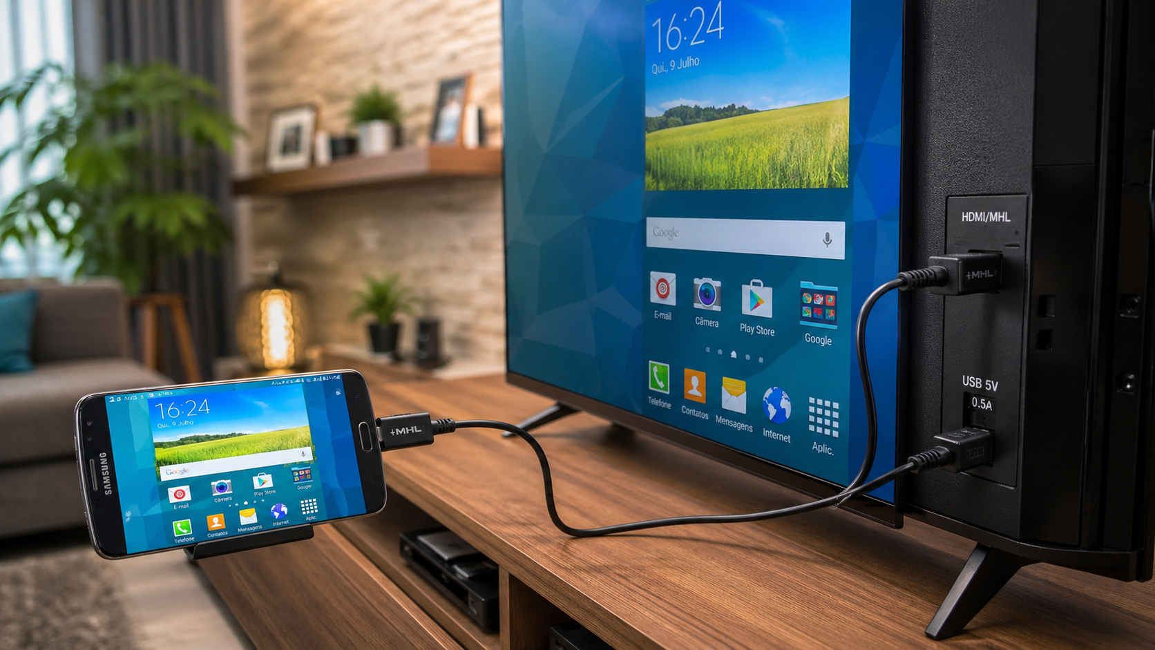 Como Espelhar Celular na TV via Cabo: Guia Completo HDMI e MHL (Sem Wi-Fi)