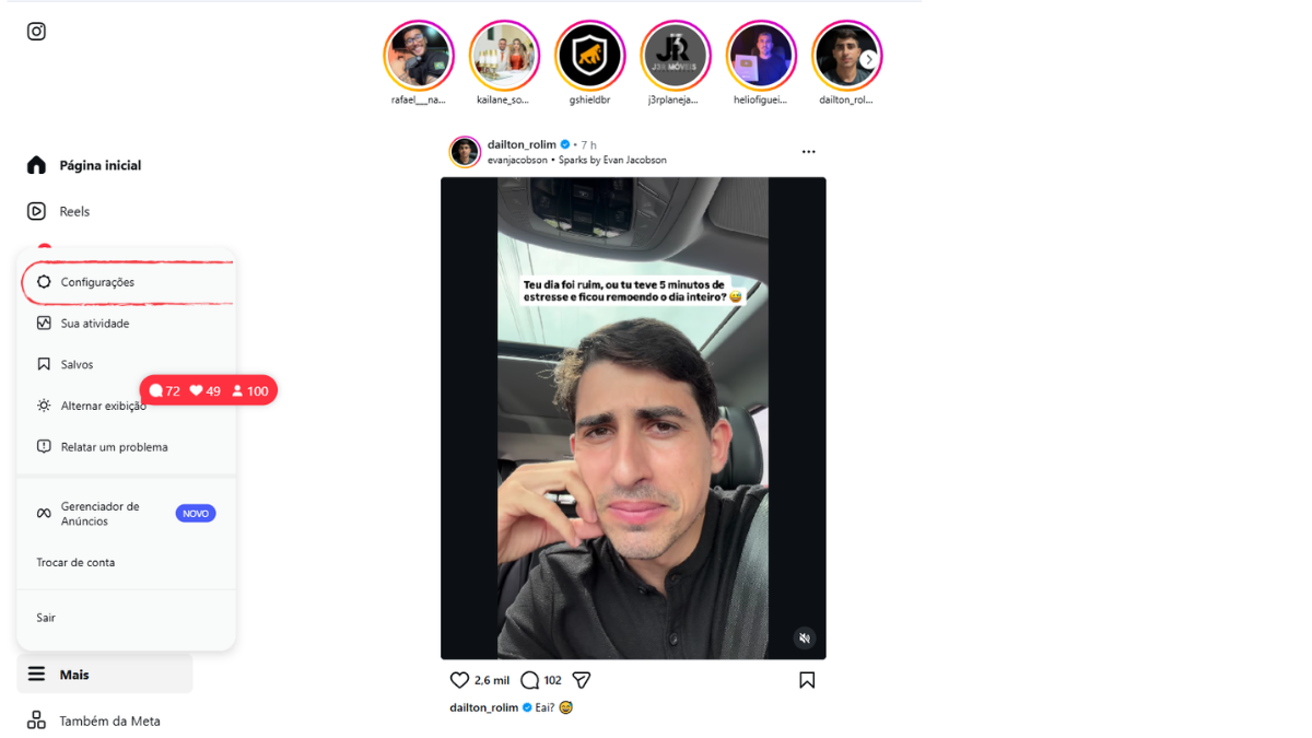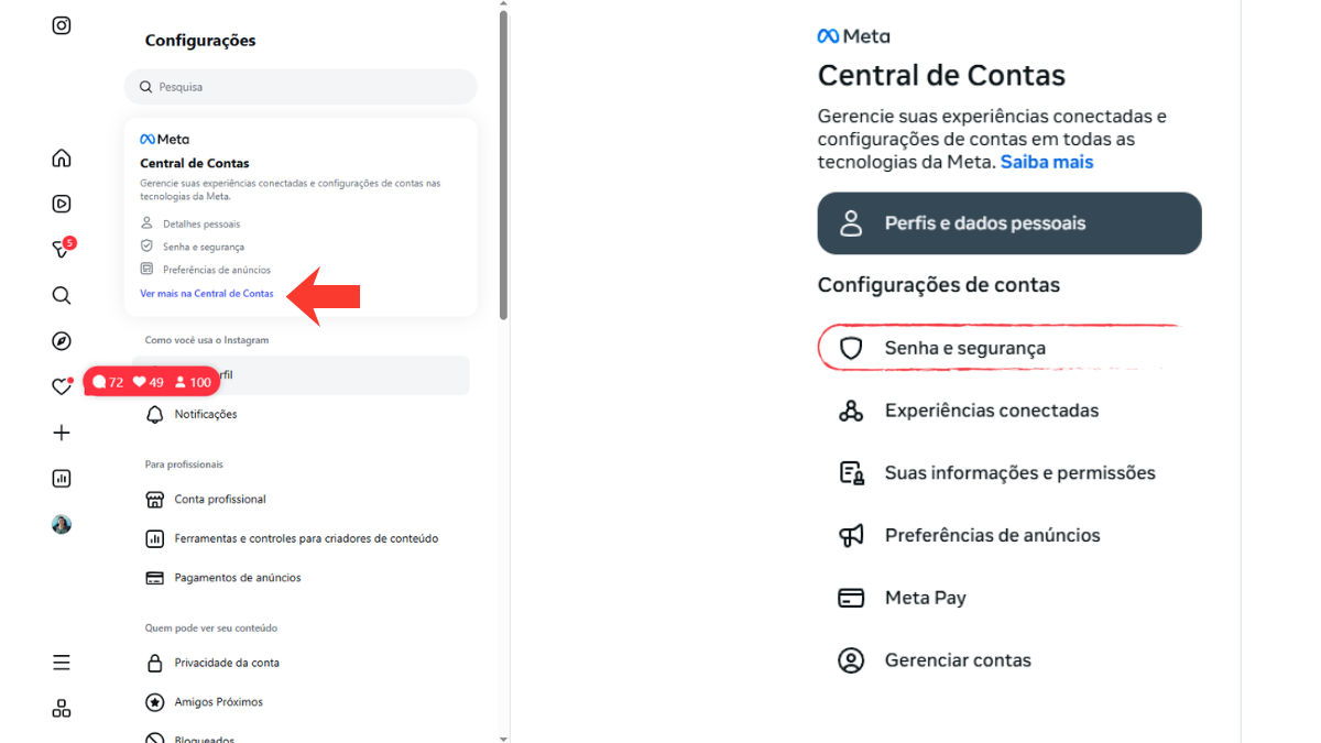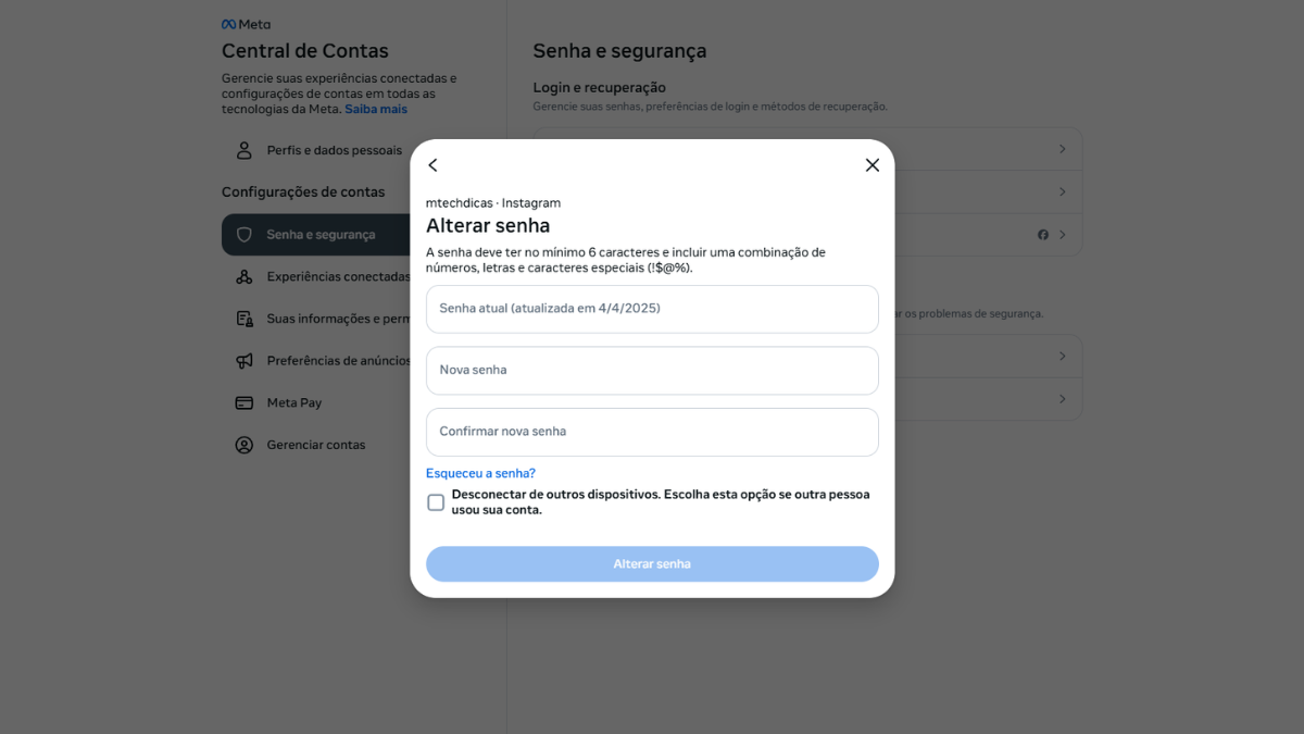 Para quem prefere utilizar o computador, o Instagram também permite alterar a senha de forma simples. O processo é muito parecido com o do celular, passando pela Central de Contas.