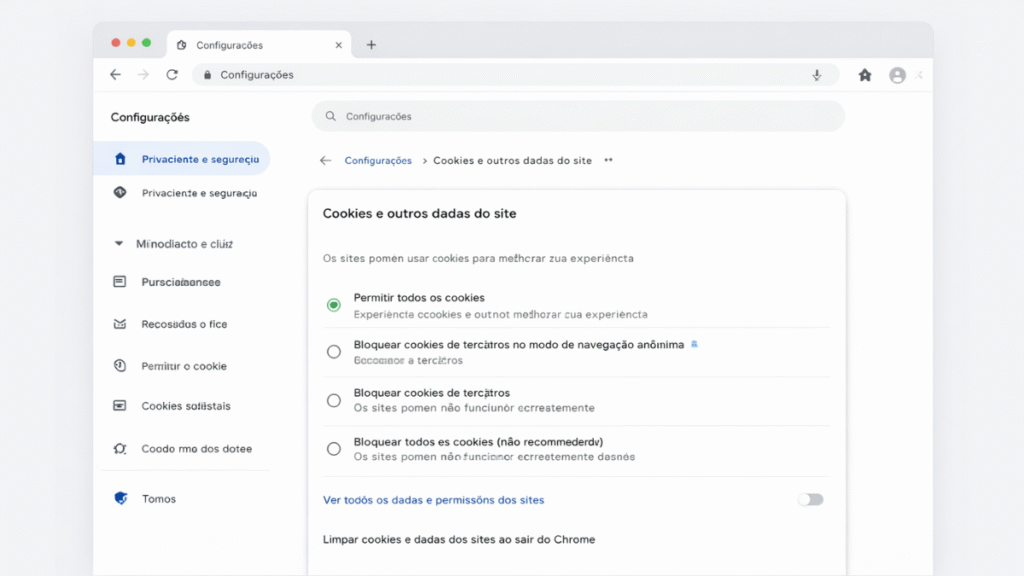 Bloquear cookies de terceiros costuma ser a alternativa mais equilibrada, pois mantém o funcionamento dos sites enquanto reduz significativamente o nível de rastreamento.